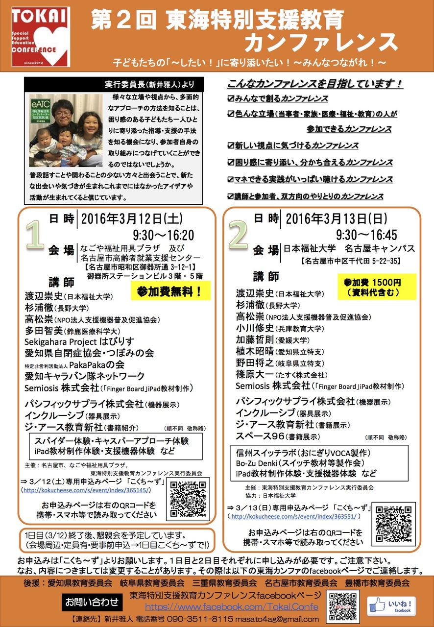 ・参加条件:発達障害児者の保護者・当事者本人、学校教育関係者、発達障害支援に取り組む支援者。