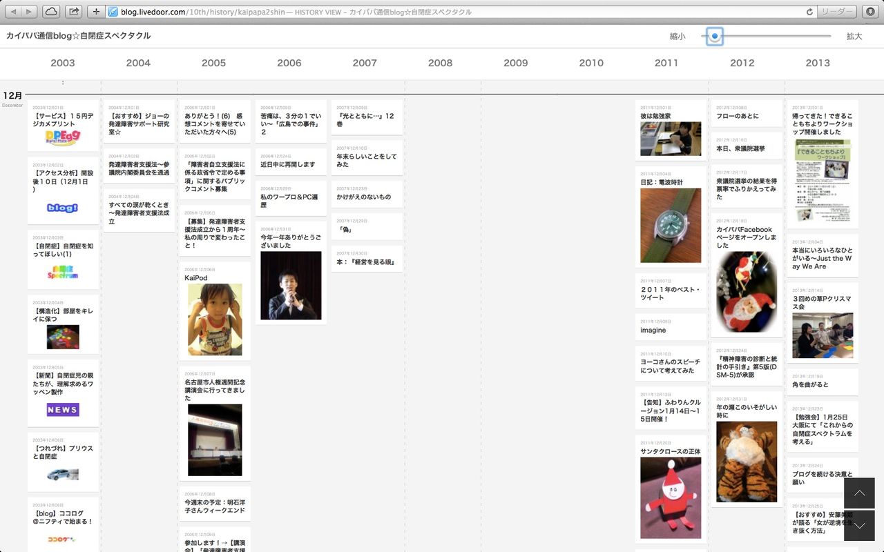 過去のブログ記事(ブログサービスが始まった2003年から全て!!)が、月ごとに並んで見られるというサービスです。